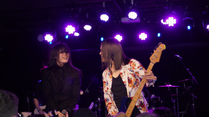 Une ambiance jazzy s’est installée tandis que les fans reprenaient le refrain. Doux j-rock aux touches visual kei, un vrai cadeau pour ceux qui aiment Janne Da Arc et la facette plus douce de la scène. Kai a fait passer le bonnet Kuromi jusque sur la tête de Yusuke, qui s’est mis à danser pour faire rebondir les oreilles.